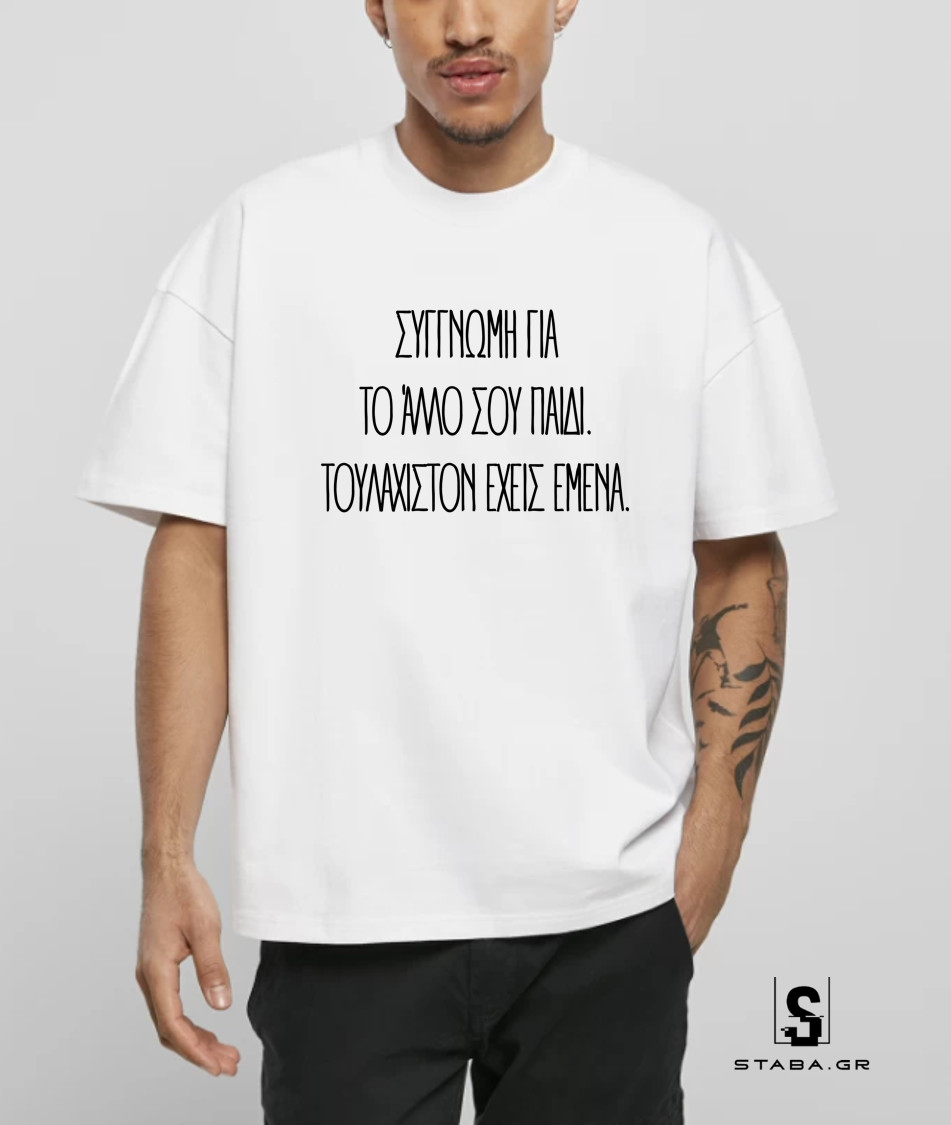 Unisex Κοντομάνικο ΣΥΓΓΝΩΜΗ ΓΙΑ ΤΟ ΆΛΛΟ ΣΟΥ ΠΑΙΔΙ. ΤΟΥΛΑΧΙΣΤΟΝ ΕΧΕΙΣ ΕΜΕΝΑ. #952